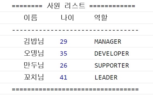 아래 코드 중 "???"를 원하는 코드로 채워서 그림과 같이 출력되게 해보장!