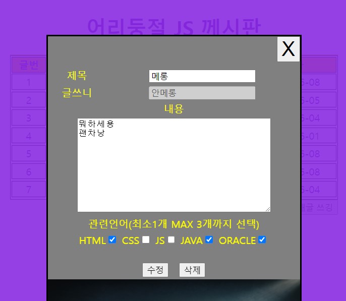 눈 뜨고 볼만한 부분은 관련언어 체크박스를 읽어온 값에 맞춰 다시 체크하는 정도!(화이팅!)