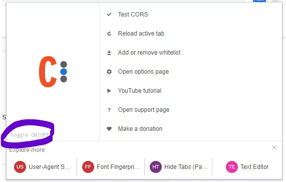 구글에서 크롬 웹스토어를 검색해서 들어간 다음에 Cross origin으로 검색하면 여러 플러그인이