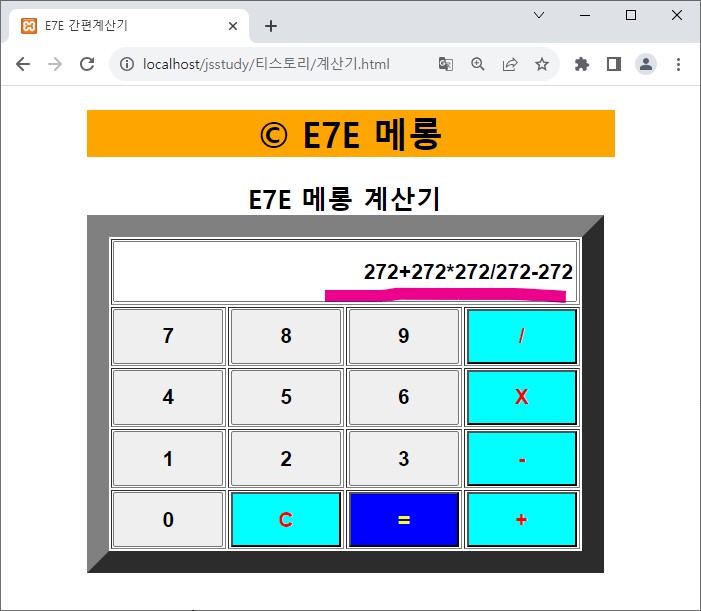버튼을 누르면, eval함수가 계산식의 결과를 바로 되돌려 준당.(차므로 쉽당!)