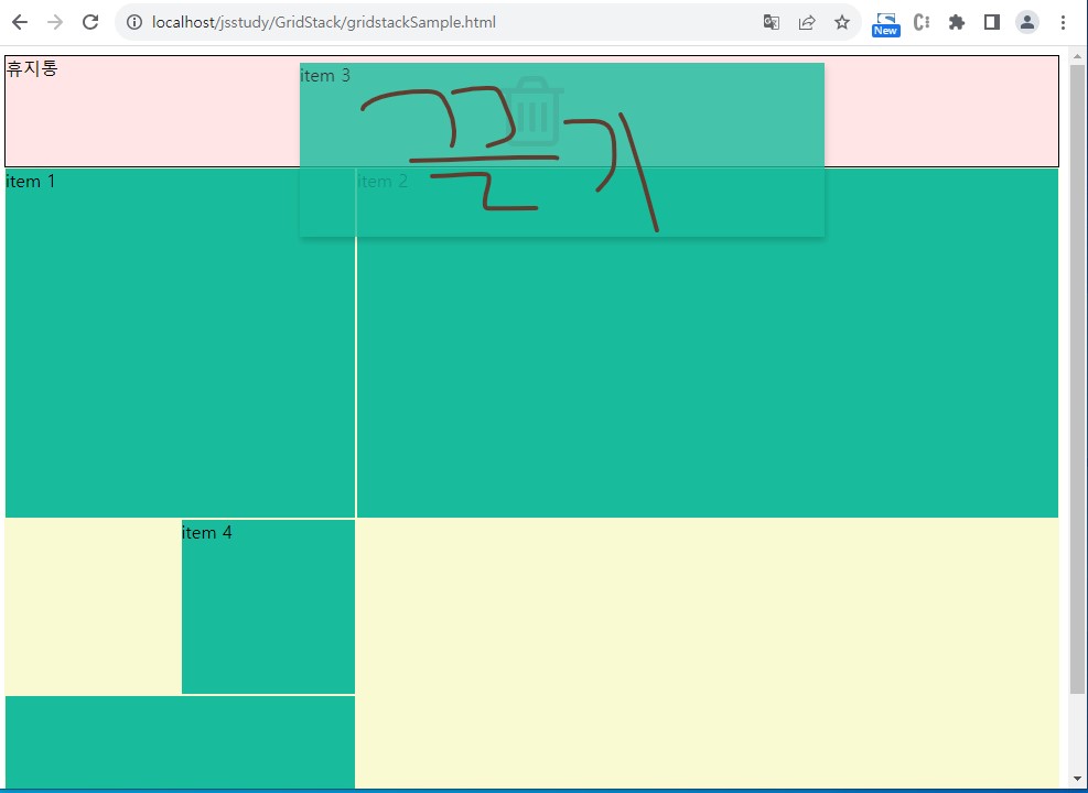 일단 gridStack 1개짜리 기본 샘플을 보장!