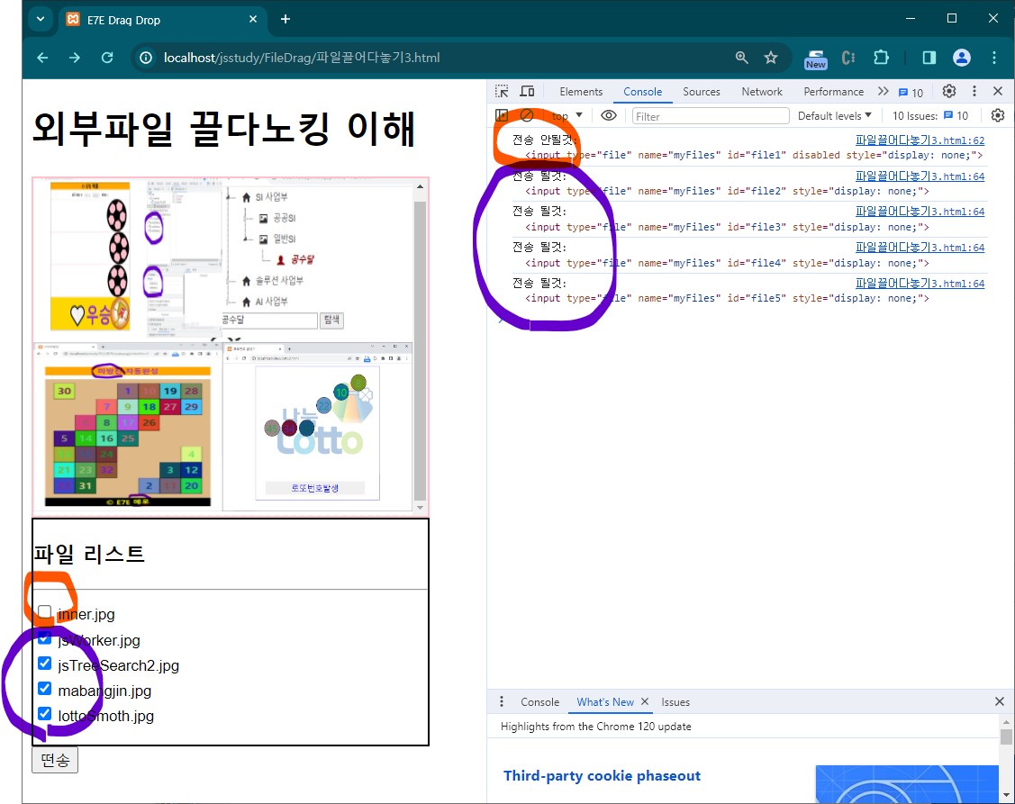 곧 마우스로 끌고 온 파일들을 아래처럼 input type=file에 넣을 수 있단 이야기당.