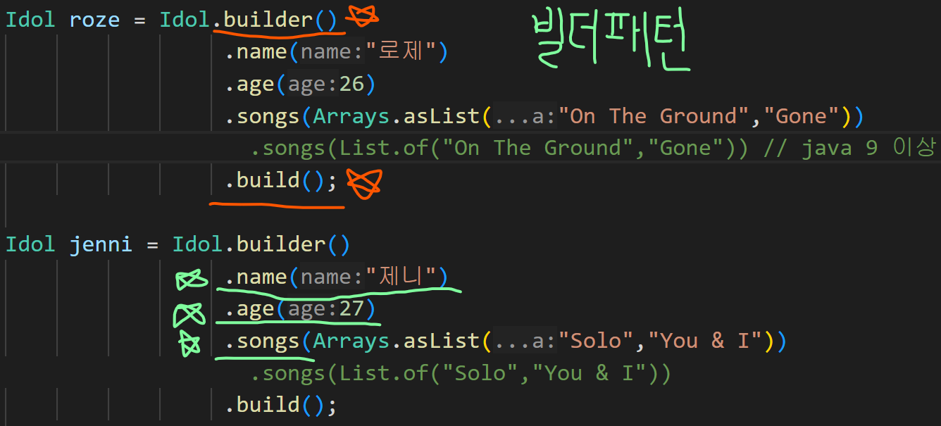 이미 꽤 많이 사용되고, Lombok에서도 @Builder 어노테이션으로 자주 사용되고 있는