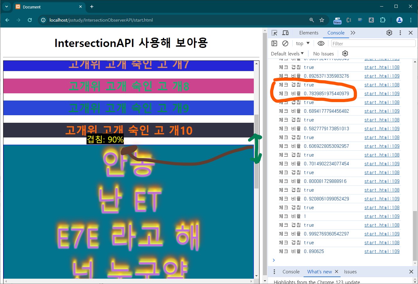 IntersectionObserver를 사용하는 핵심코드 이외의 부분에 일부러