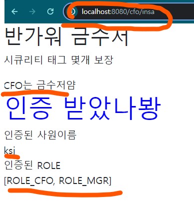 <div sec:authorize="hasRole('CFO')">CFO는 금수저얌</div>