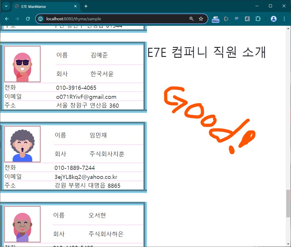 브라우져 주소 표시줄에 (http://localhost:8080/thyme/sample) 써보장.