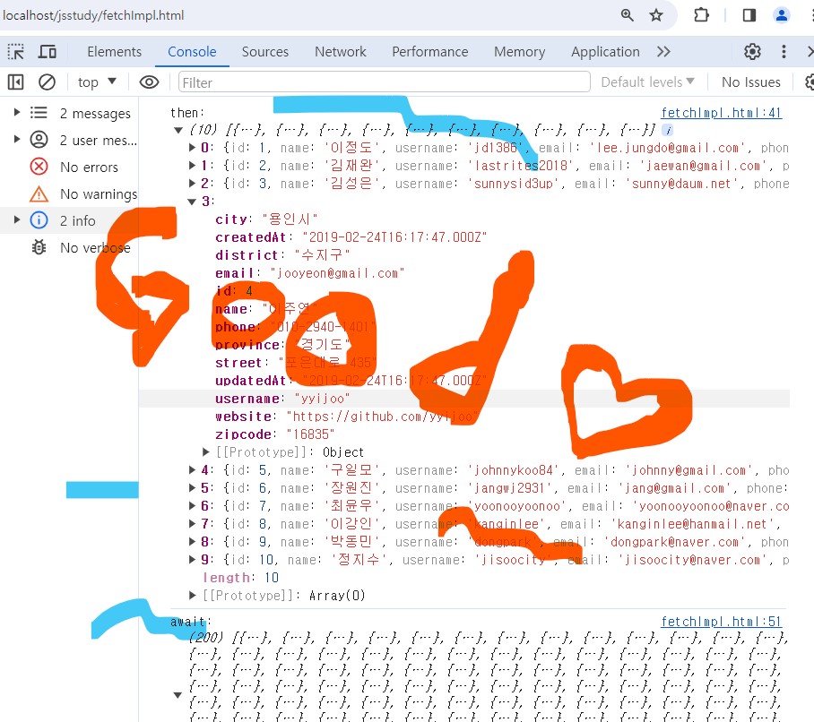 단지 koreanjson.com 사이트가 데이터 주기를 가끔 거부하는 것 같당!~~ ㅋㅋ