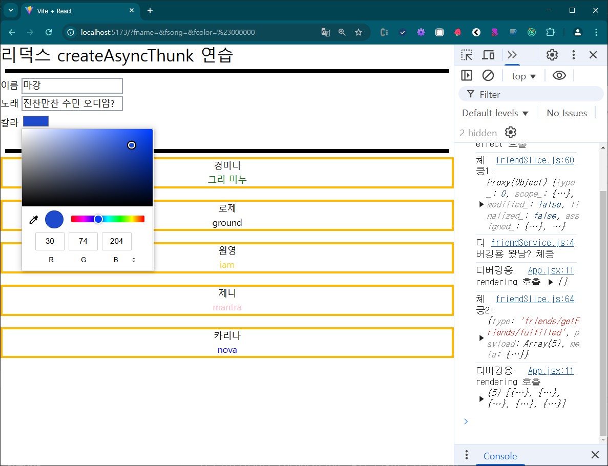 여기까지 잘 되었다면 이전 글에 있는 addFriend를 createAsyncThunk를 이용하여