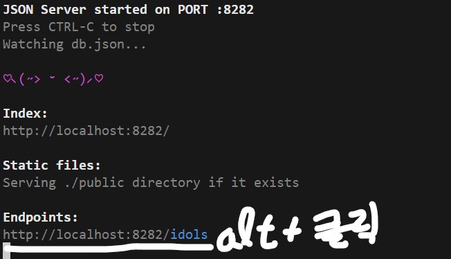 이제 db.json 파일을 읽어 서비스를 하는 서버를 구동 시키장(port는 내맘대로 8282)
