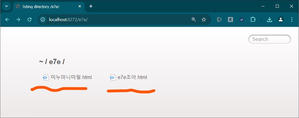 이제 브라우져 주소 줄에 http://localhost:8272/e7e 라고 치면 아래 처럼 보여야 한단당.