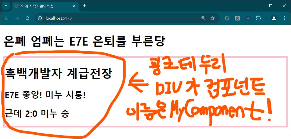 여기서 React뿐만 아니라 프론트 프레임워크들의 기반 개념인 컴포넌트틀 느껴보장