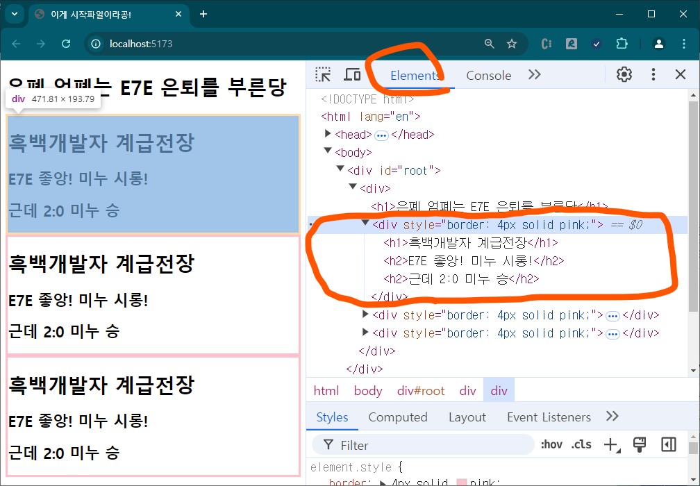 Elements탭을 선택한다면 아래와 같은 모습일꺼이당.
