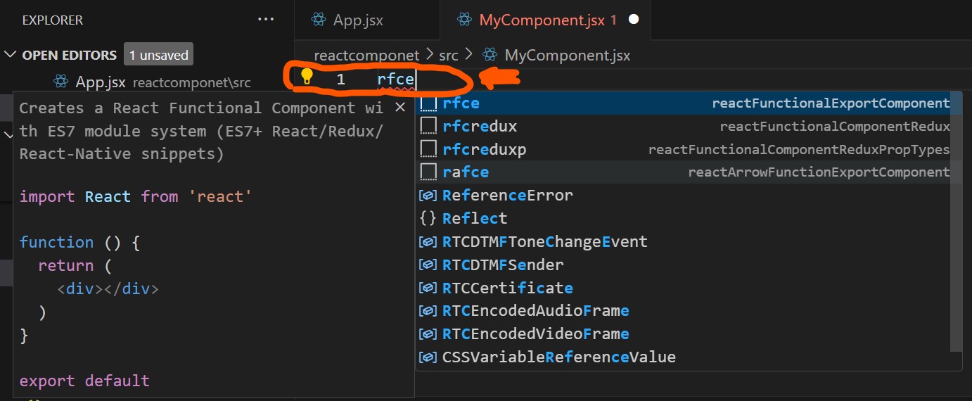 이제 vsocde에서 src폴더 아래에 MyComponent.jsx라고 파일을 맹글장.