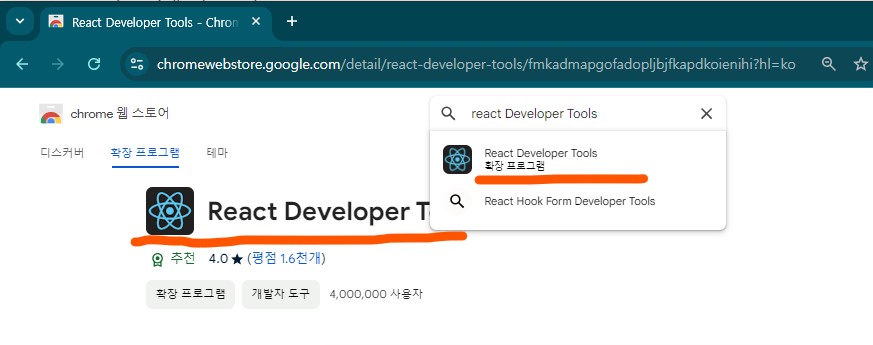 구글 크롬 웹 스토어에서 React Developer Tools 이라고 검색하여