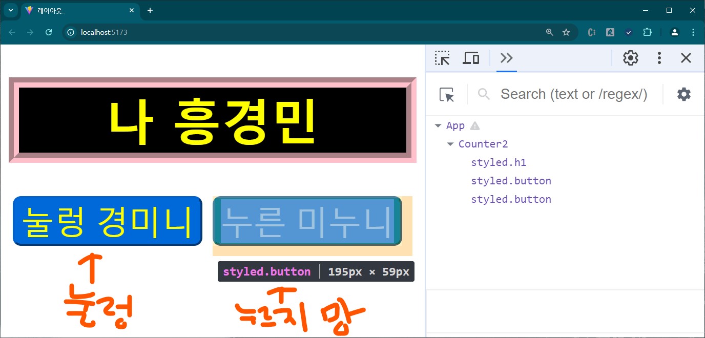 button 태그를 MyButton이라 이름 지었다공 쉽게 생각하장. (요게 styled component!)