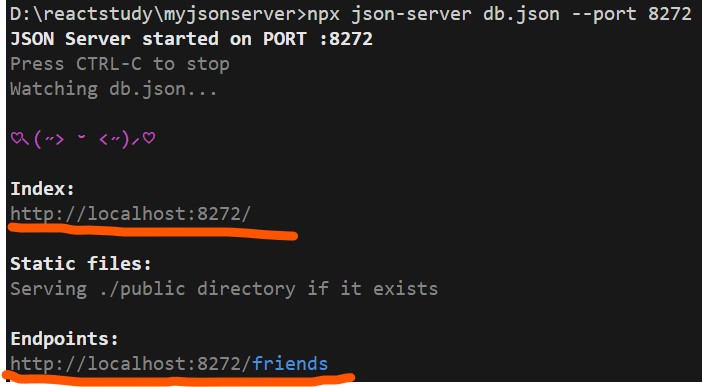 npx json-server db.json --port 8272