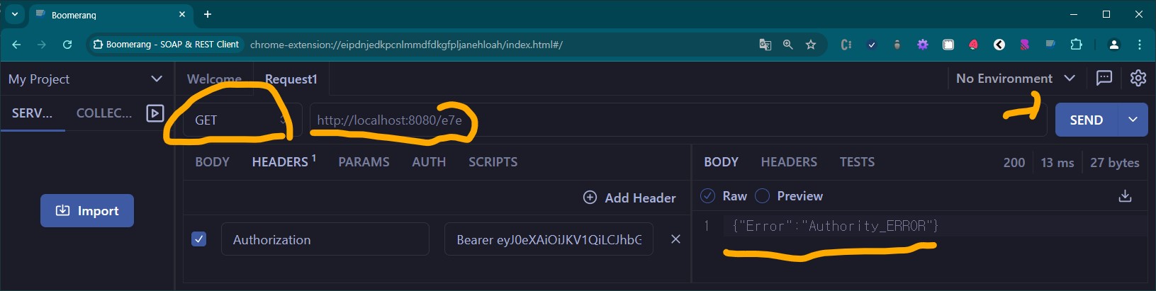 권한없는 "/e7e" 에 요청 -> 권한 에러