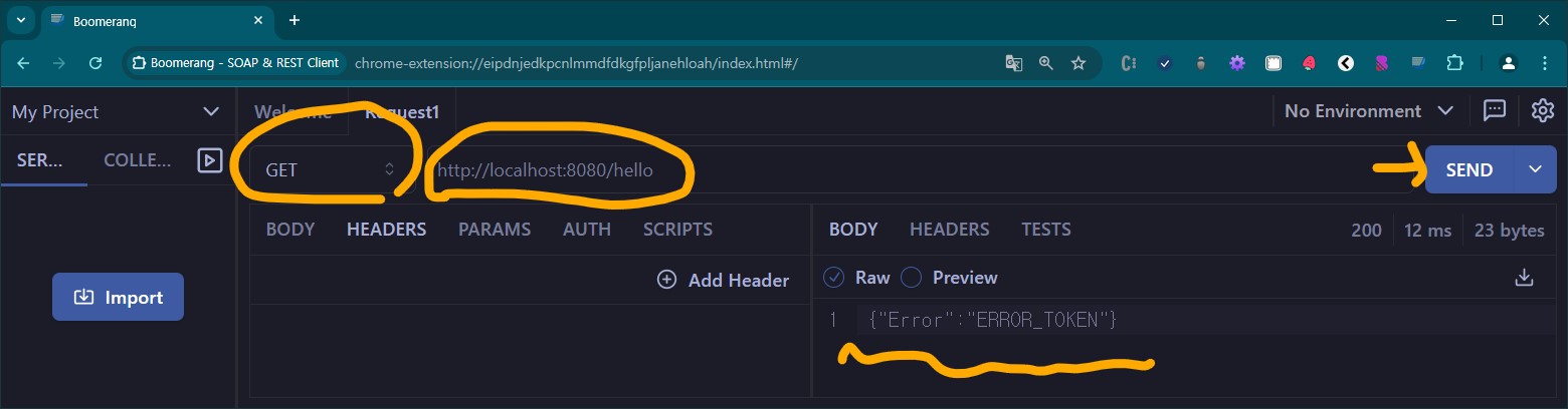 토큰 없이 접속 "/hello" 호출 토큰 에러 발생