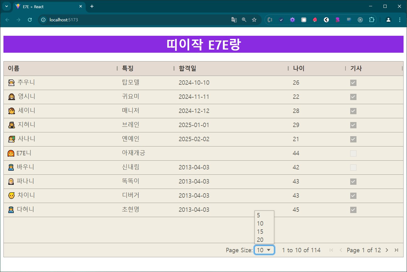 일부러 데이터를 많이 넣었는데, 그건 Ag-Grid에서 지원하는 페이지 나누기 기능을 넣기 위해서당.
