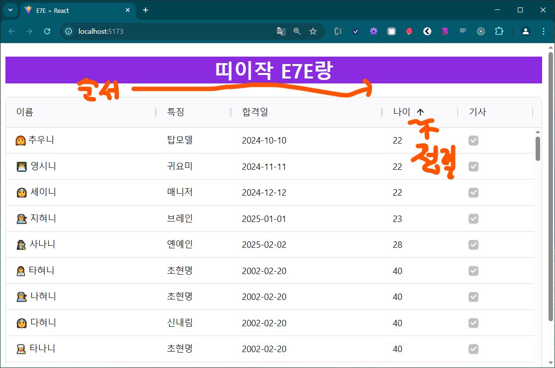 컬럼을 잡아 끌어도 보고, 밖으로 던져도 보고, 클릭(sort동작)도 해보장.