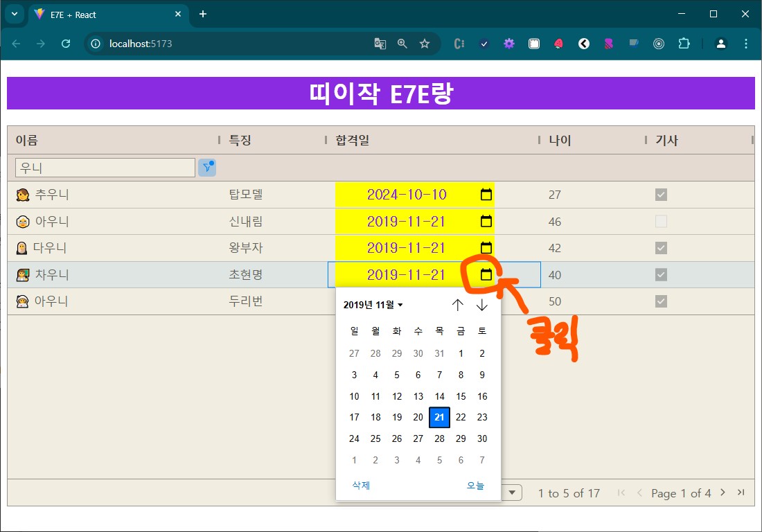 새로 고침 한 뒤 합격일 컬럼을 클릭하면 아래 처럼 동작함을 확인할 수 있당.(좋겠당!)