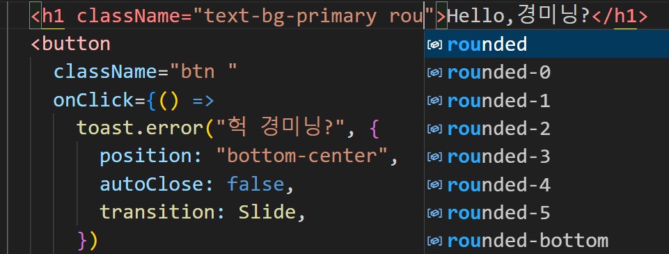 <h1 className="text-bg-primary mt-5">Hello,경미닝?</h1>
