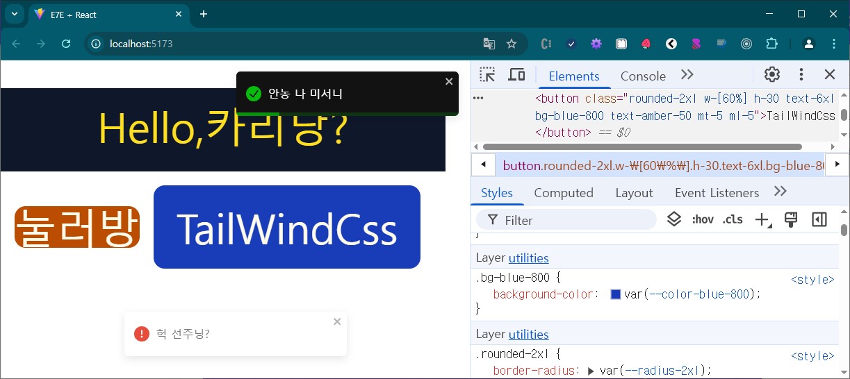 7. npm i react-toastify 명령으로 괜히 설치 그냥 재미용