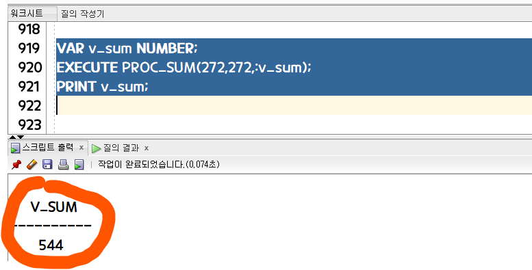 EXECUTE PROC_SUM(272,272,:v_sum);