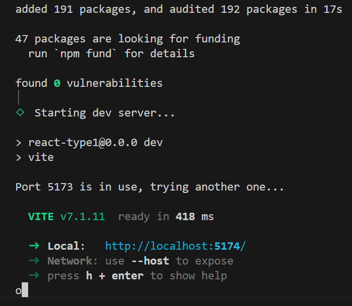 나의 경우 react-type1(꼭 소문자로)으로 새 폴더를 만들어서 열었당.
