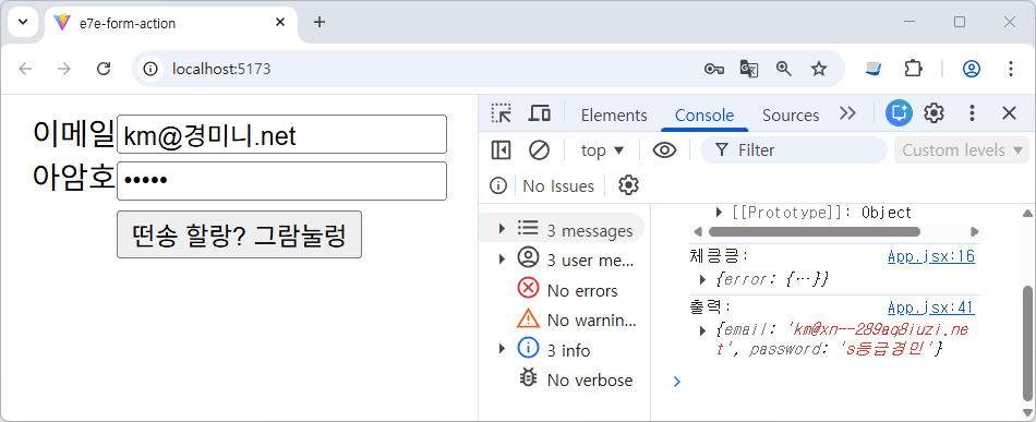 action을 쓰면 자동으로 매개변수로 formData를 넘겨줘서